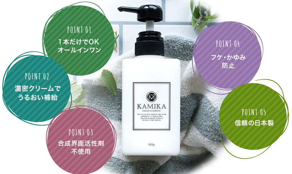 カミカシャンプーは、泡立たないクリームタイプの画期的なシャンプーです。