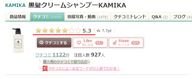「カミカシャンプー」は、口コミでも総合評価が高く大半の方が満足のいく効果を実感しています。