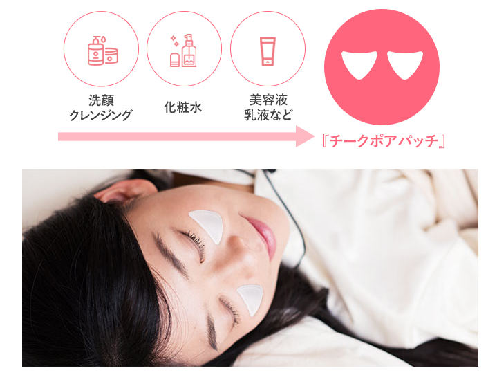 週に2回の簡単ケア!「お肌を整える(保湿) →チークポアパッチを貼る→ 起床後、丁寧に剥がす」これだけ!