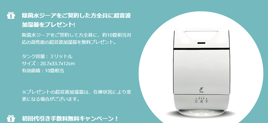 今、除菌水ジーアをご契約した方全員に、下記の豪華プレゼントキャンペーン実施中!